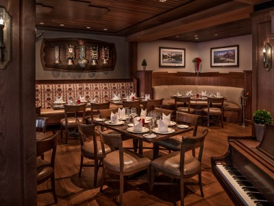 The Ram Photos of visiting celebs from Errol Flynn to Marilyn Monroe line the hallways at Sun Valley Lodge—and you can bet that most of them dined at The Ram, the resort’s original restaurant that opened in 1937. Although recently renovated with an exhibition kitchen that gives an airier feel, the dining room preserves its historic décor of antler chandeliers, rustic booths, and collection of Swiss cowbells.