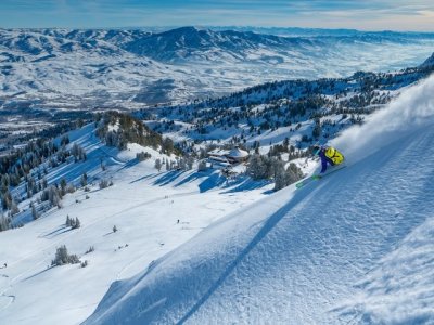 With double-black-diamond cirques and chutes cupped by 9,000-foot-plus summits, Snowbasin seems larger than life. Lifts—which include two gondolas—swiftly and warmly convey people 2,400 feet from base to summits. For you own gold-medal moment, ride the Allen Peak tram and gape at the Grizzy Start for the men’s Olympics downhill, which plummets at a stomach-churning 62% pitch. (Yes, you can opt to ride the tram back down). But the resort has plenty of long blue cruisers too, like Elk Ridge and Main Street.
