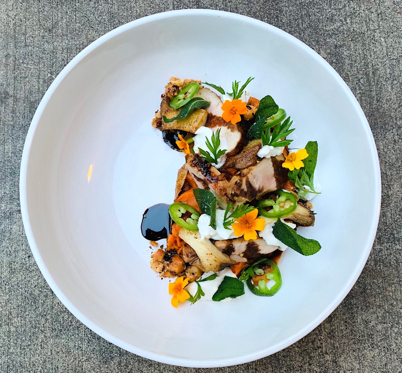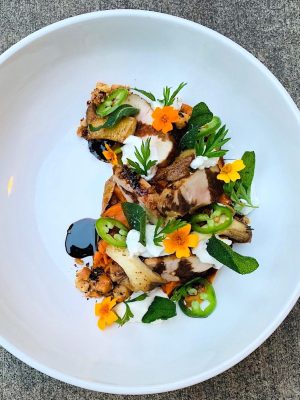 More adventuresome offerings also enthrall, with layers of flavors in the tamari-glazed Kurobuta pork loin paired with (I’ll list it all) ramen cacio e pepe, chili-charred shallot, pickled carrot, 160-degree egg, shaved jalapeño, sweet herbs, lime, smoked cotton-candy dashi.